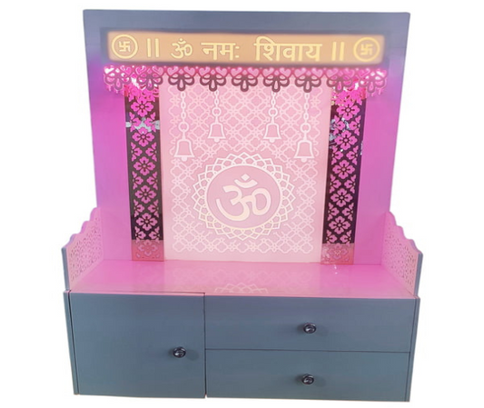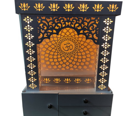 3D Corian Om Mandir with WPC Jali Pillar and Drawer