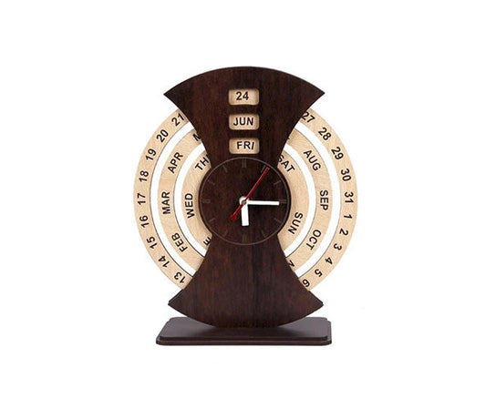 Wooden Lifetime Infinite Calendar with Clock Desk Calendar Round Shape